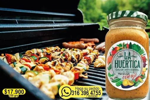 La salsa artesanal de maracuyá o de uchuva con ají de La Huertica, con su textura aterciopelada y sus matices afrutados, se desliza con gracia sobre tacos crujientes, realzando la frescura del cilantro y el aguacate.